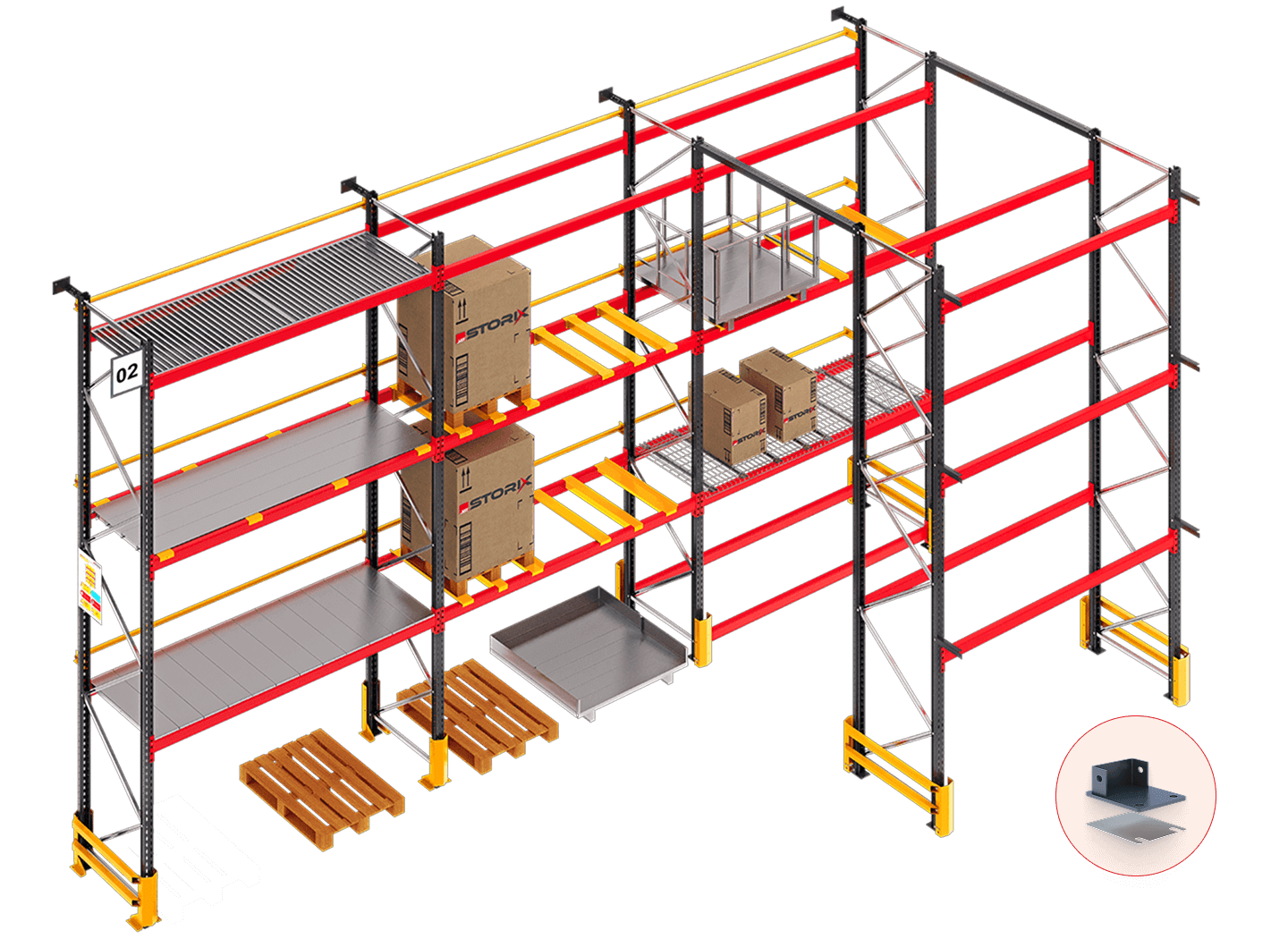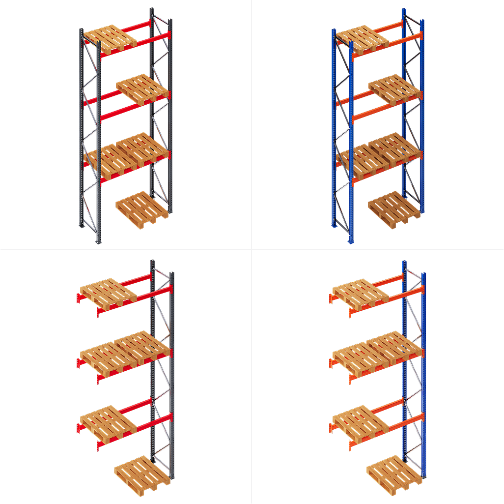 Often referred to as the Starter Bay, this unit is a complete rack section made up of two upright frames connected by a full set of beams. It can function independently as a single unit or serve as the starting point for a continuous row of racks. From the Main Bay, the system can be extended as needed, with the help of various compatible accessories and components.